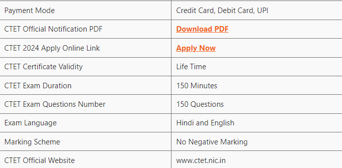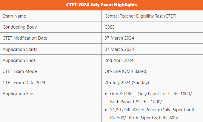 CTET 2024 Notification: Highlights